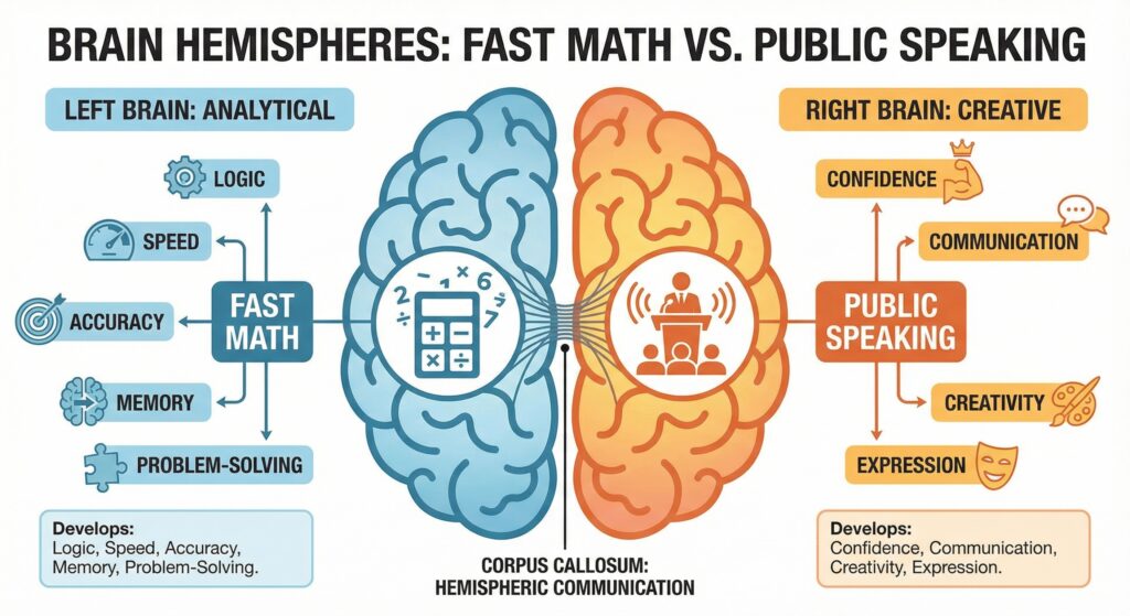 Mathlic is Eduwin’s signature Wholebrain Development program that uniquely combines Fast Math and Public Speaking into one seamless, high impact learning experience. Designed for children aged 4 to 17, Mathlic strengthens both the left brain (logic, speed, accuracy) and the right brain (communication, creativity, confidence). This balanced approach enables children to think faster, express their ideas clearly, and achieve academic excellence.